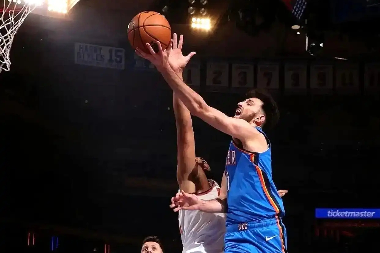 比赛进程清晰地展现了唐斯的困境:尼克斯的进攻几乎被布伦森一人掌控,后者全场送出15次助攻,却很少将球传给处于优势位置的唐斯,球队更多时候选择让后卫持球突破或外线投射,唐斯即便在篮下获得机会,也难以得到队友的传球支援。布伦森本人也18次出手,只命中了5球,效率惨淡。这种球权分配的失衡,不仅浪费了唐斯的进攻天赋,也让尼克斯的进攻体系显得单一乏力——第二节雷霆下起三分雨拉开分差时,尼克斯只能依靠冲击内线艰难追分,外线手感低迷的短板暴露无遗,若唐斯能获得足够球权,或许能为球队打开进攻局面。